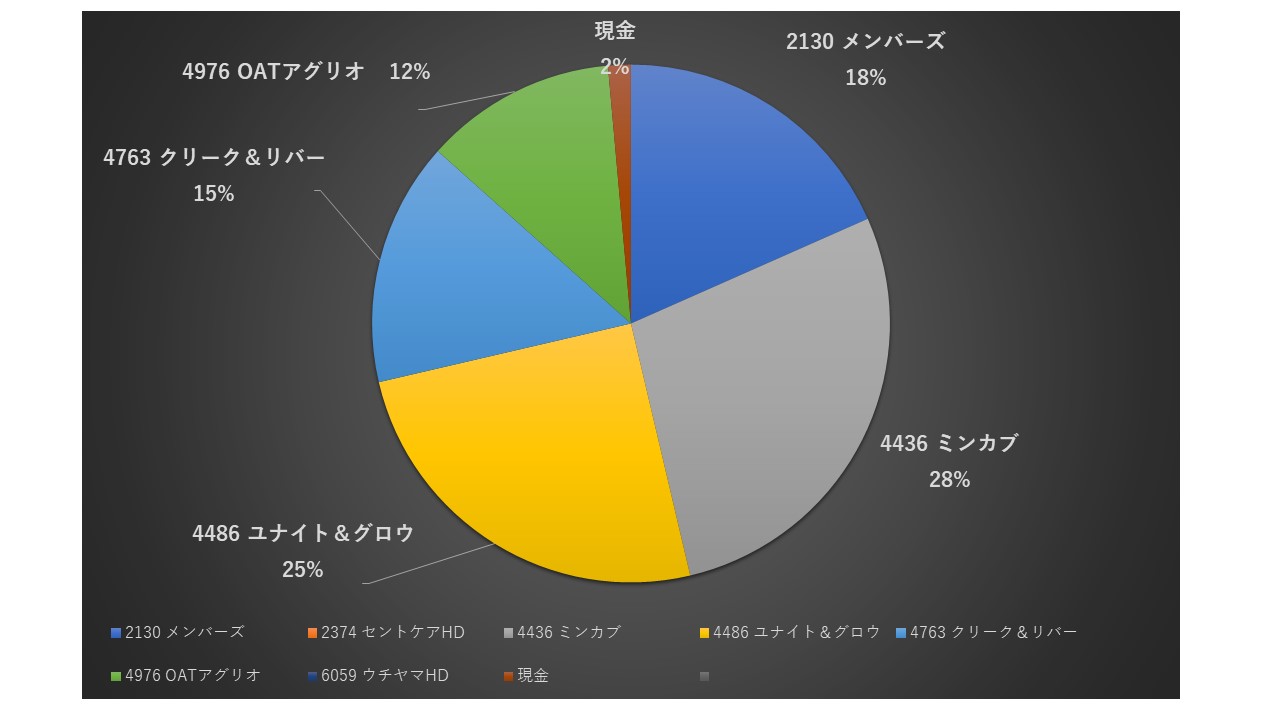 まあ、ミンカブ依存でしたので、少し売って、ユナイトアンドグロウは一旦ある程度売った後、相当下げたかな、というところで再度INしてます。